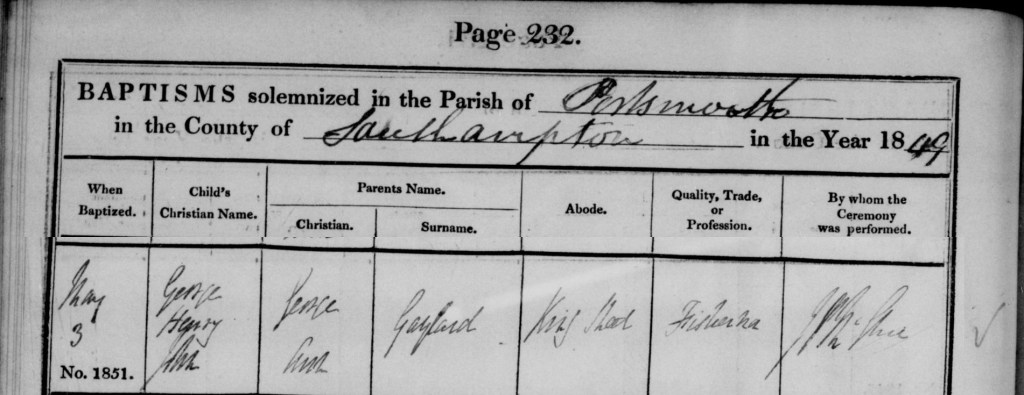 Here is George and Ann’s second child, George Henry John Gayleard’s baptism in 1849, also he was born in 1848.