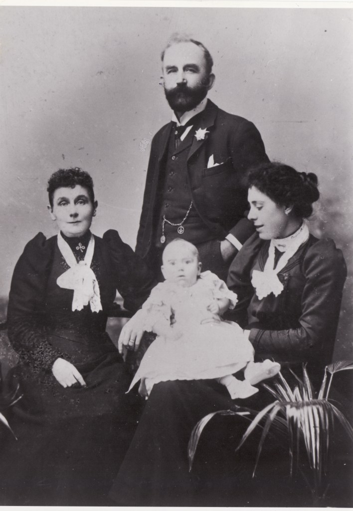 Here is the first photo she is reported to be in. According to family stories, this is a photograph of my grandfather William John Gayleard when he was born. The woman on the left is his mother Harriet Gayleard nee Hicks and William Henry Gayleard with Mary Ann Gayleard being on the right holding the baby. I will save the controversy of the photo for a separate post.