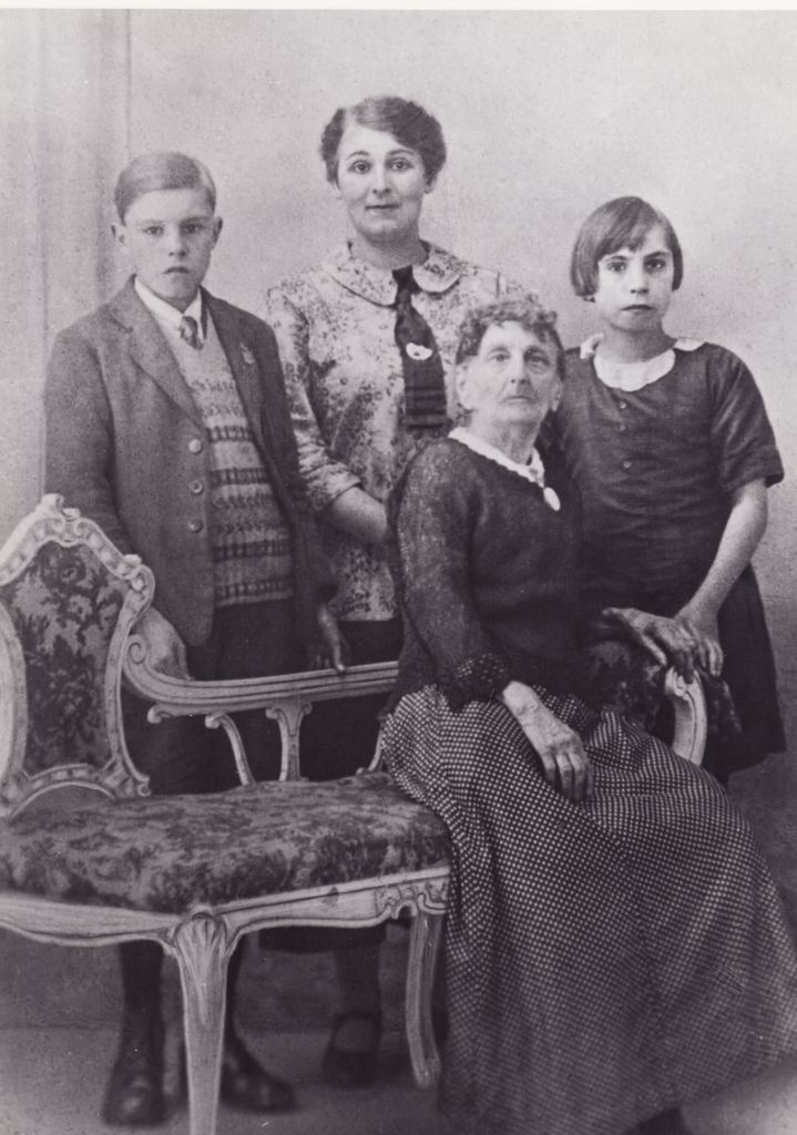 However in this photo I did find some written notes. This is Mary Ann Evans (Gayleard) in the 1920’s. Seated is Mary Ann, behind her is Rebecca Davey (Davies) and two of her three children, Clifford and Priscilla. Clifford was born in 1914 and Priscilla in 1917.
