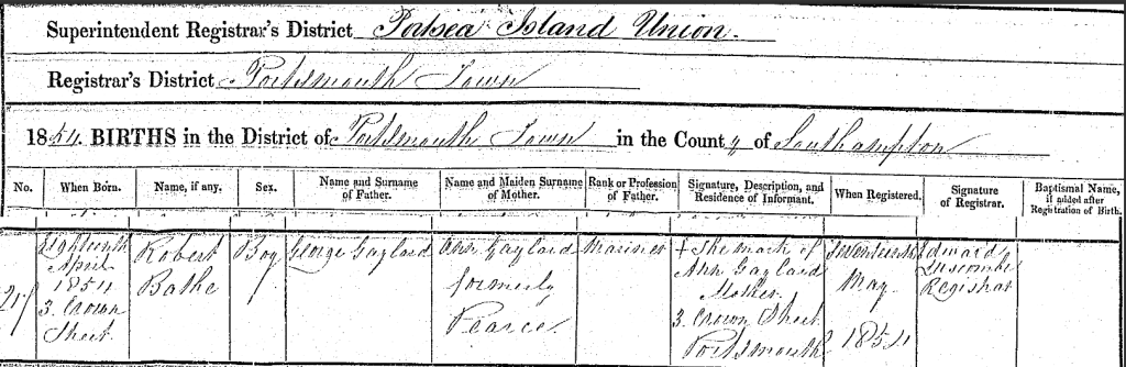 George Henry John Gayleard is born in Portsea in 1848 and lives until the early 1900’s