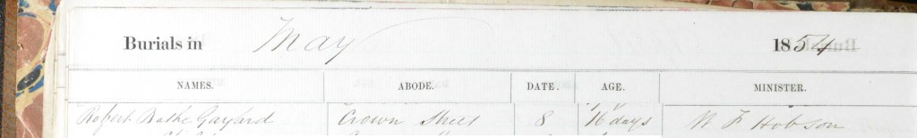 Robert Bathe Gayleard was born on April 18th but however lived only 16 days. You will notice the family is living at 3 Crown st now.