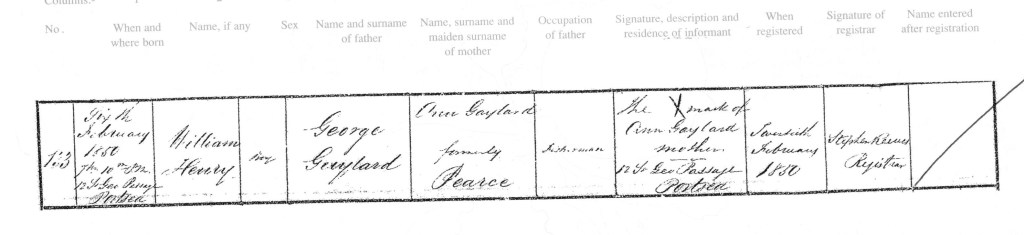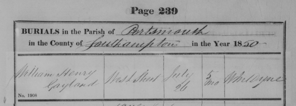 This is George and Ann’s third child William Henry Gayleard born in February and died 5 months later in July.