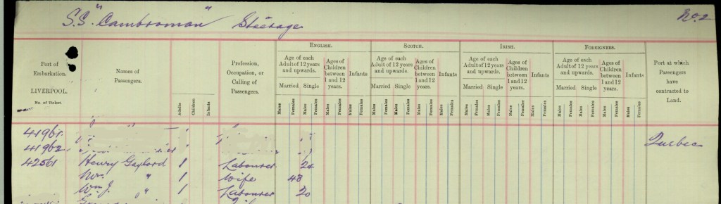 They of course arrive in Canada on the same ship Cambroman in August of 1899 and the spelling of Gayleard is correct and they put their place of residence will be Winnipeg.