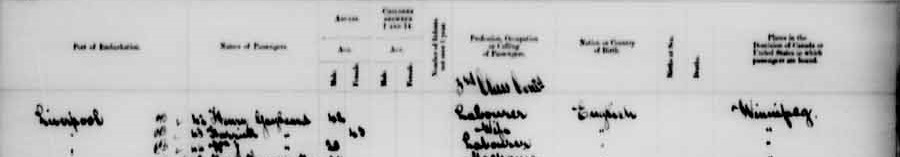 This is the 1901 census showing Winnipeg, you can see that they actually state they have been in the country for 2 years already and both William and William John are working as labourers.