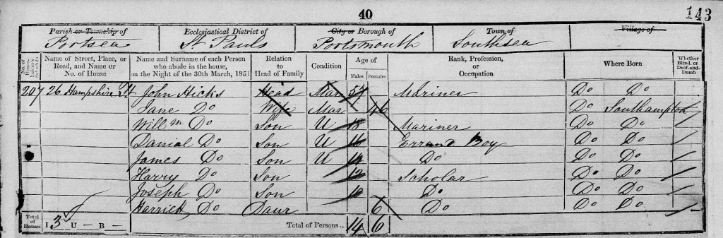 Here is Harriett with her family in the 1851 census in Portsea