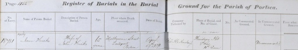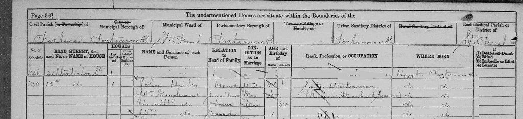In the 1881 census William, Harriett and their son William can be found living with Harriet’s father John Hicks in Portsea