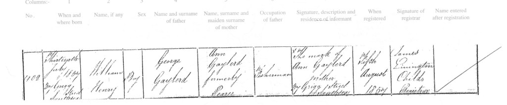 William Henry Gayleard was born on July 13, 1857 to George Gayleard, mariner, and Ann Pearce in Portsea, Hampshire, England. As on the previous post or page, William can be found in the 1861, 1871 and 1881 census.