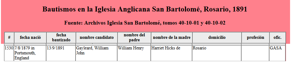By 1891 William, Harriett and William John were living in Rosario, Argentina. When they moved to her is hard to say in 1885 John Hicks passes away. Did they move just before or after I cannot say.