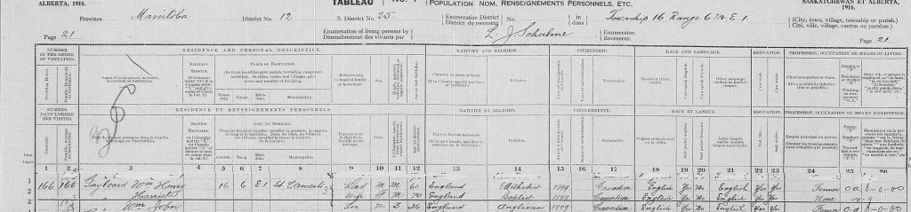 They are still farming according to the 1916 census. What is interesting that in all the previous and current ones is that they have that all 3 can read and write. What also is very interesting in the this one is the religion. Here it says that William Henry is Methodist, that Harriett is Baptist and that William John is Anglican.