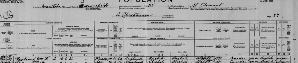 “…all those with in Western Canada with the spelling “Gayleard” either related to William Gayleard or they married into the family.”