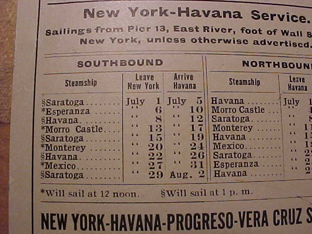 The Monterey or Ward lines is the only ship I really found any amount of information on. Ward Lines ran ships for about 1840 to 1950. As you can see they ran a lot of ships down to Cuba and Mexico area. So a 4 day trip from Cuba to New York.